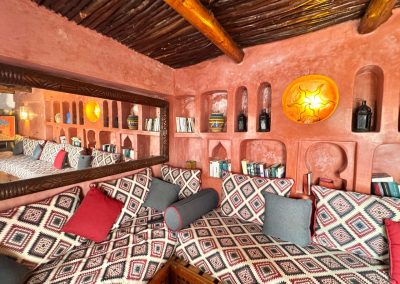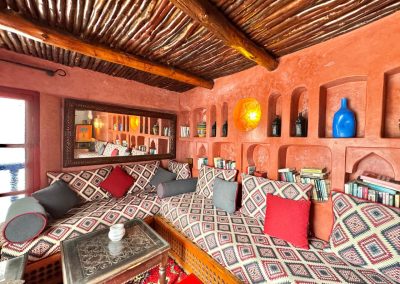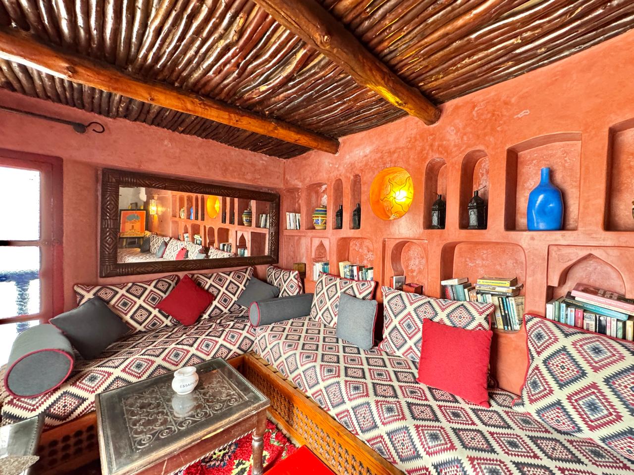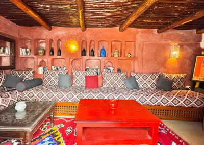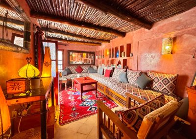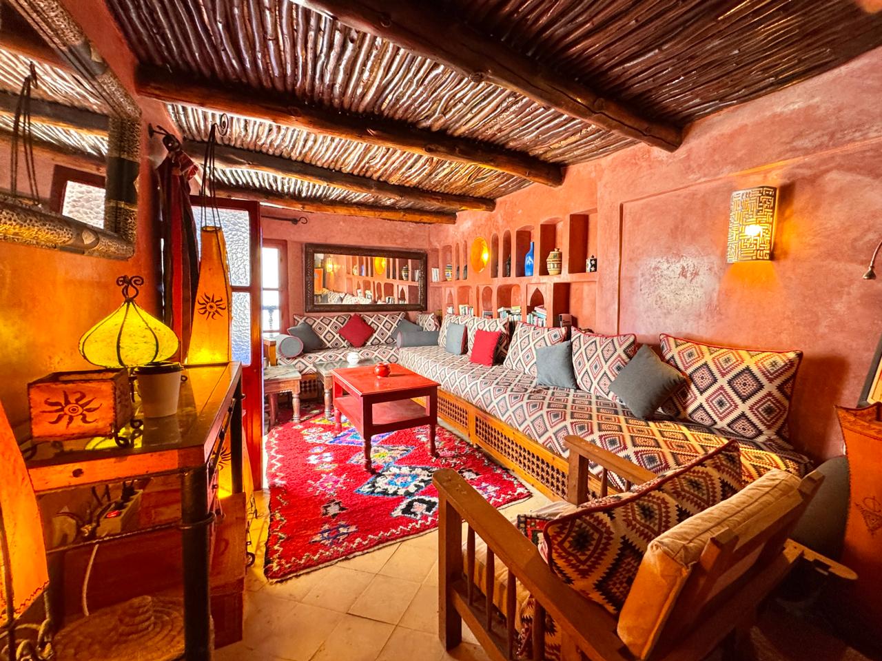 Salon marocain donnant un accès direct sur la terrrasse face à la mer